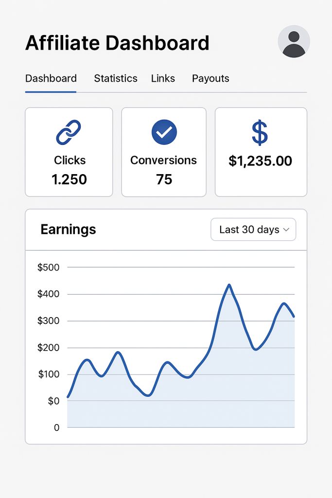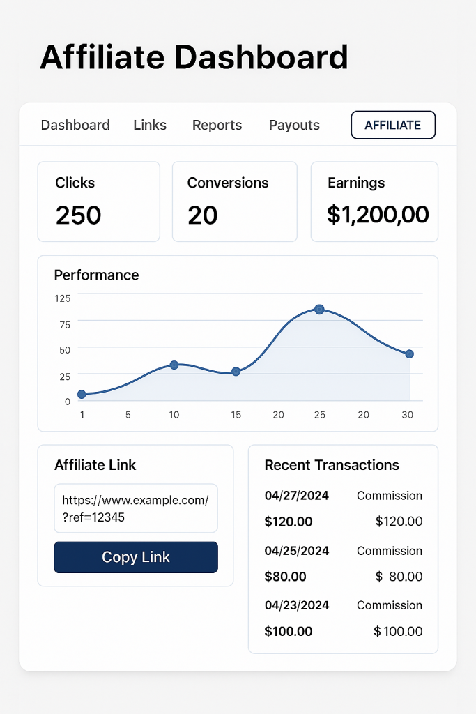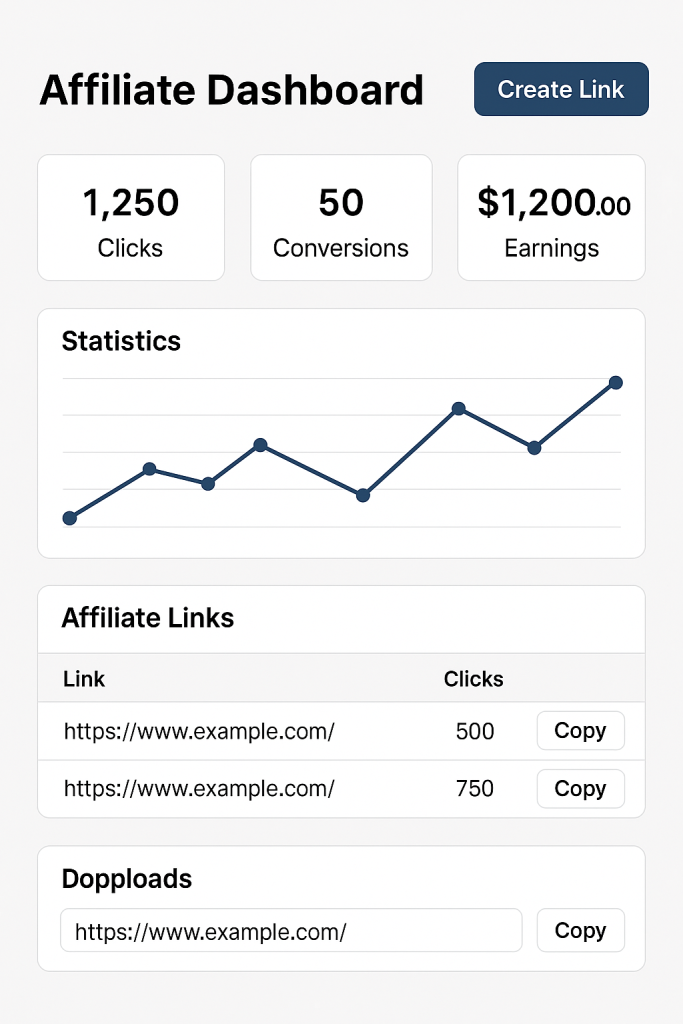 Once approved, you’ll have access to your own affiliate dashboard with trackable links and creative assets.